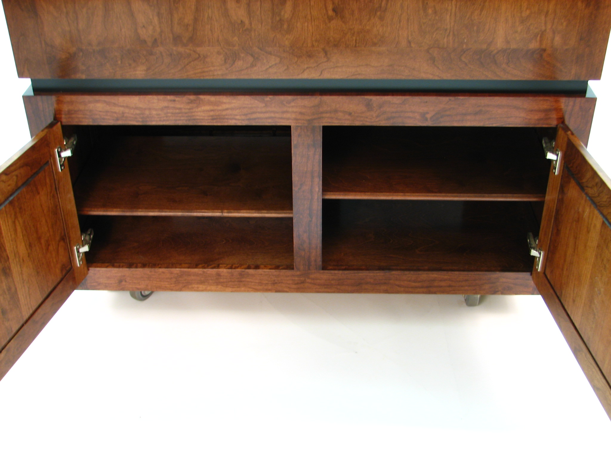- Two storage bays with doors and adjustable shelves for organized equipment storage