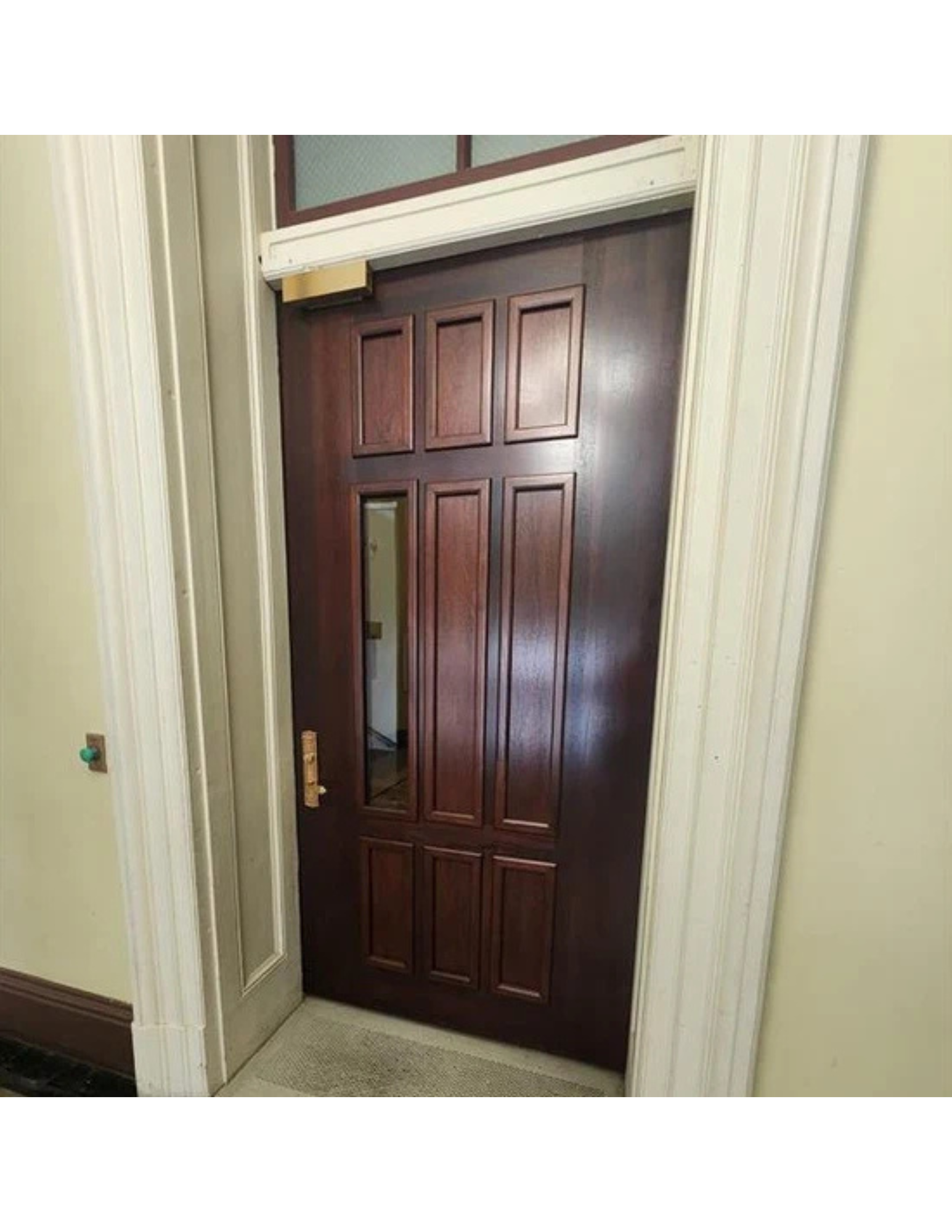 - Slab Door: A solid wood slab door encased around ballistic steel. This door has no windows, providing maximum security and privacy.