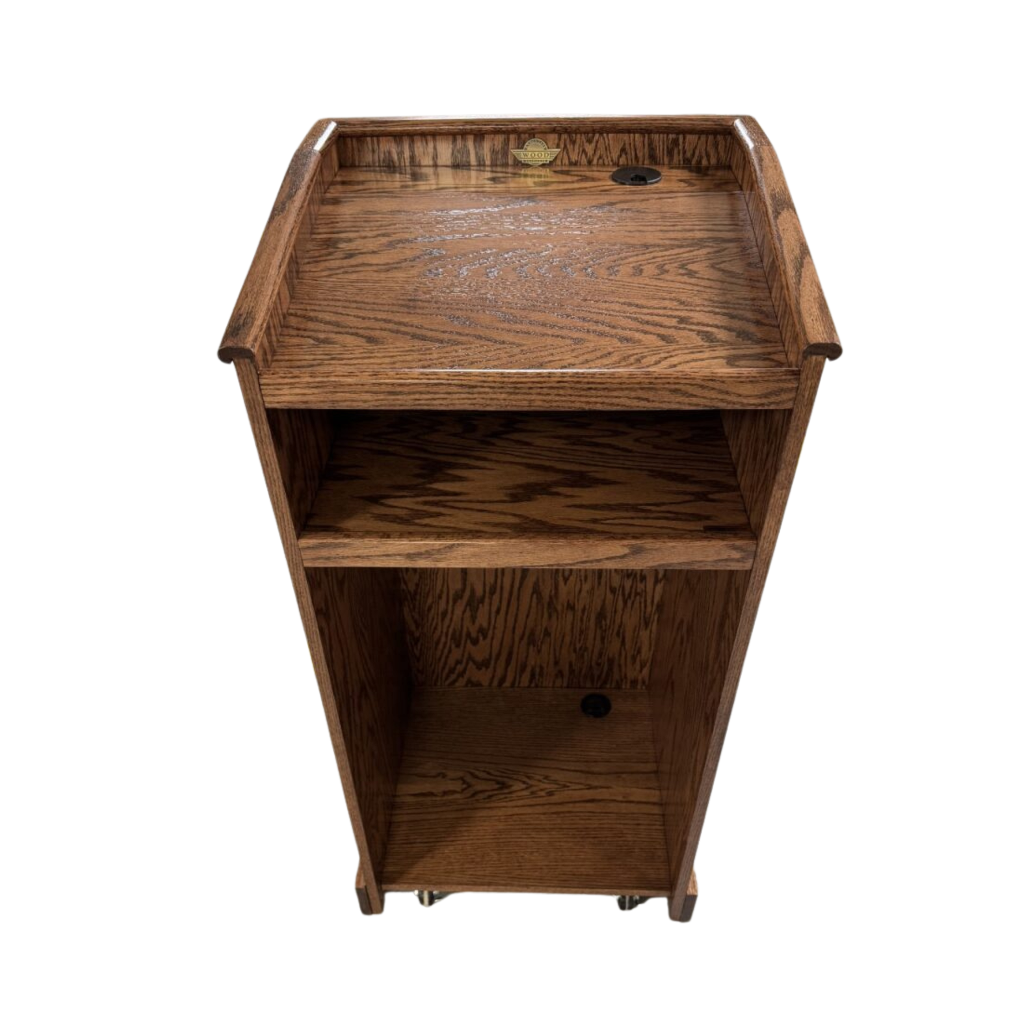 The Graduate Wood Podium is a sophisticated and budget-conscious solution built for educators, speakers, and professionals who value quality and practicality. Handcrafted in Missouri from solid oak hardwood and wood solids, this lectern delivers long-lasting durability wrapped in a clean, professional design.