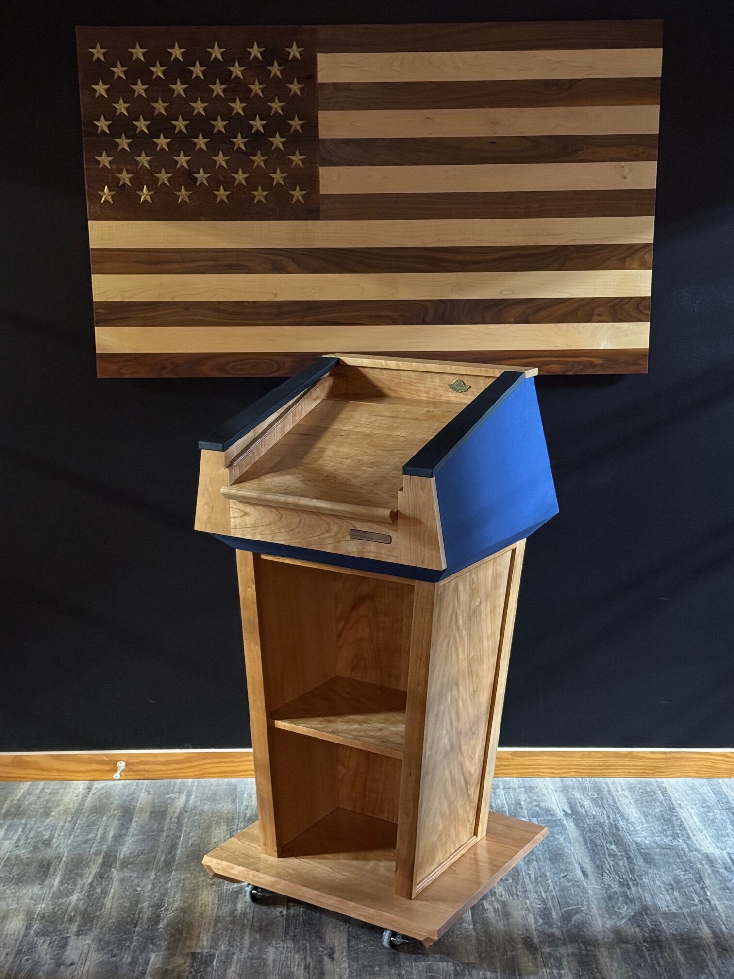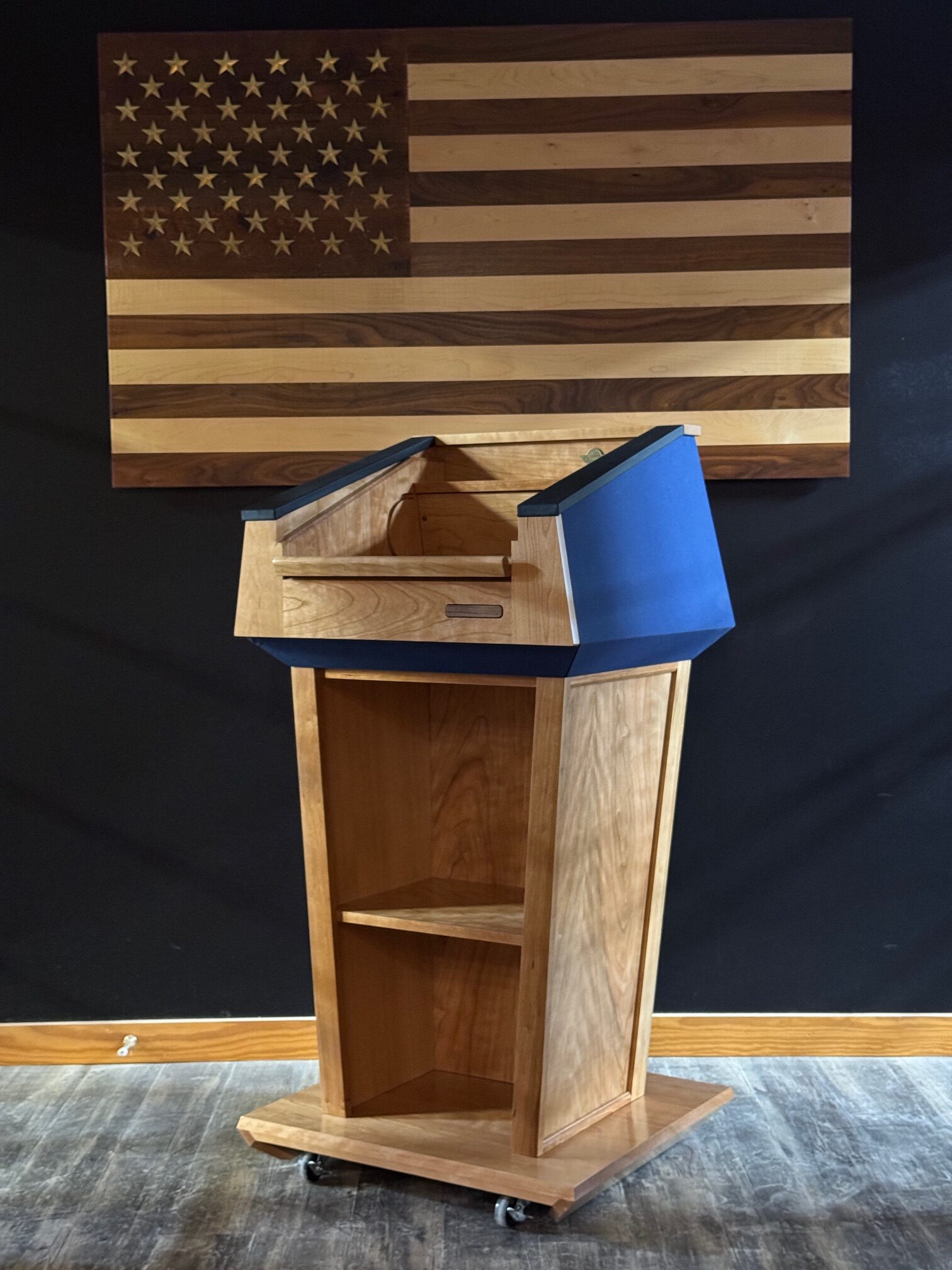 Each unit is handcrafted in the USA from select solid hardwoods and built to safeguard high-profile speakers in government buildings, courtrooms, and corporate settings. With concealed ballistic materials and seamless design, this anti-ballistic lectern provides uncompromising safety without sacrificing elegance.
